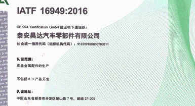 公司擁有IATF16949:2016國際標準質量管理體系認證,精良的設備、先進的生產(chǎn)工藝及完善的質量檢測保證了公司產(chǎn)品的可靠品質...